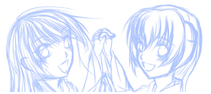 今日はなんか先生たちの集まりがあるとのことで4時間目で帰れましたwwそんで帰ってからはずっと年賀状描いてました~。ヴァン騎士、しゅごキャラ、ひぐらし版のラフかんせ~。ひぐらしは下書きにもとれかかれたよ↓ でかいですが。でも実際は1450×2150くらいなので大分小さい方。でかいと塗りが楽でいいですよね(*´v`) 右が羽入で左が梨花ちゃまですよ(言わなきゃ わかんねぇ!!)羽入が頭でっかちになってしまった(´・ω・`)昭和58年を本当に抜け出せたんだよ!!的な・・・風にしたか っ た な orz 二人とも巫女姿にしようかな~と思ったけど謹賀新年だし、やっぱり着物かなぁ。と。着物は帯とか柄を考えるのがすごく楽しいですね。そして何気に羽入は初書きでした。 明日は席がえだー。やだな(´・ω・`)今の席気に入ってるのに・・・・。てか隣にひぐらしとか語れる人がいることが嬉しくて仕方がないのれす(笑) 今度もこんな席に巡り合えますように! 今日はあんま書くことないのでこれで~。